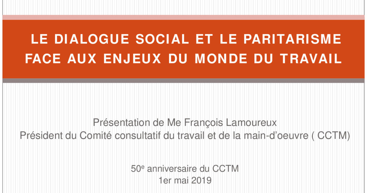 Le Dialogue Social Et Le Paritarisme Face Aux Enjeux Du