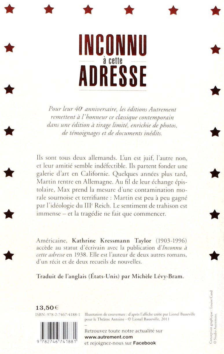 Inconnu à Cette Adresse De Kathrine Kressmann Taylor
