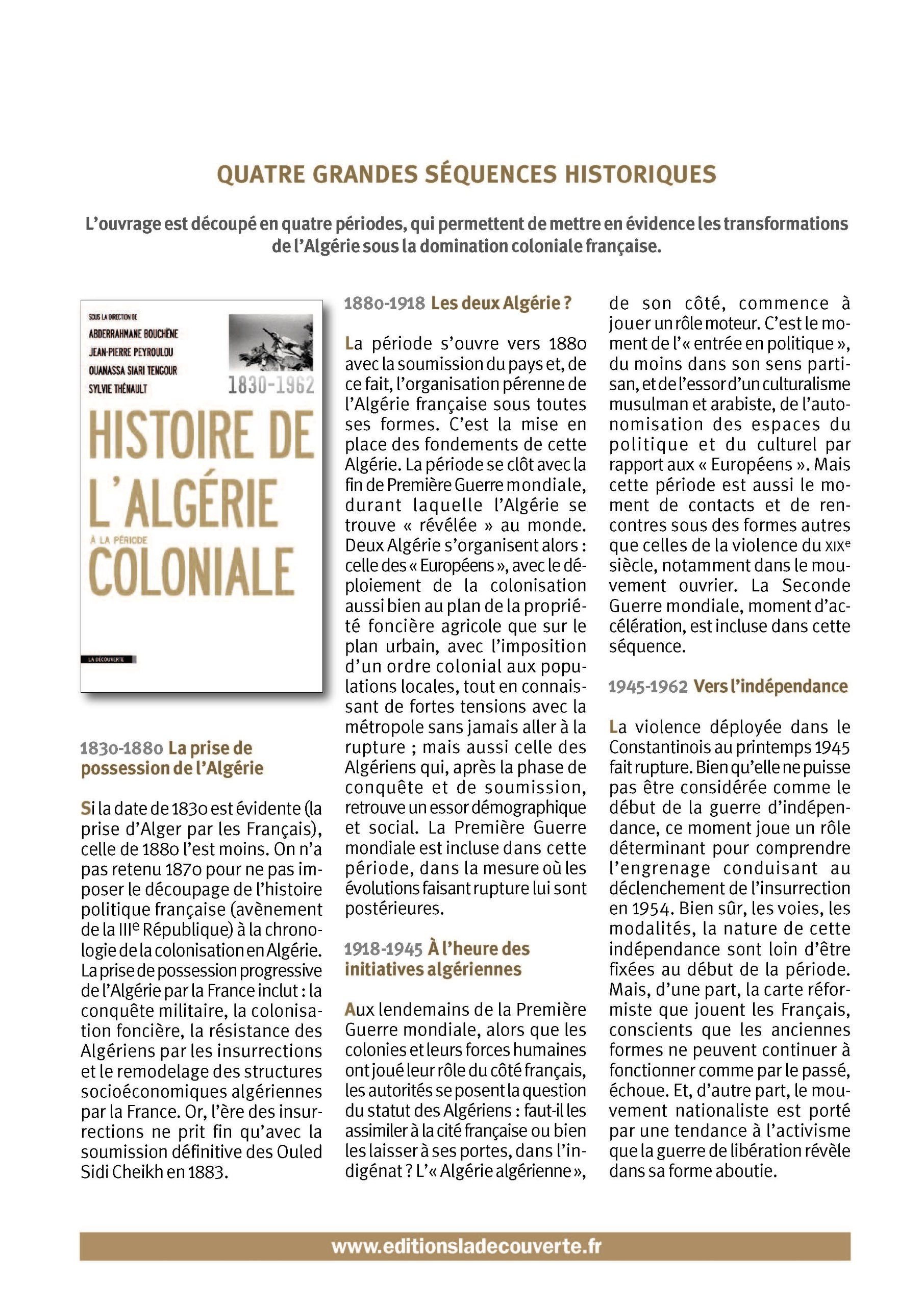 Histoire De Lalgérie à La Période Coloniale 1830 1962 La Découverte