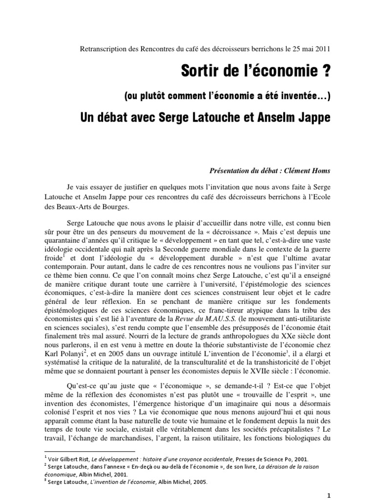 Sortir De Leconomie Retranscription De Rencontre Avec Serge