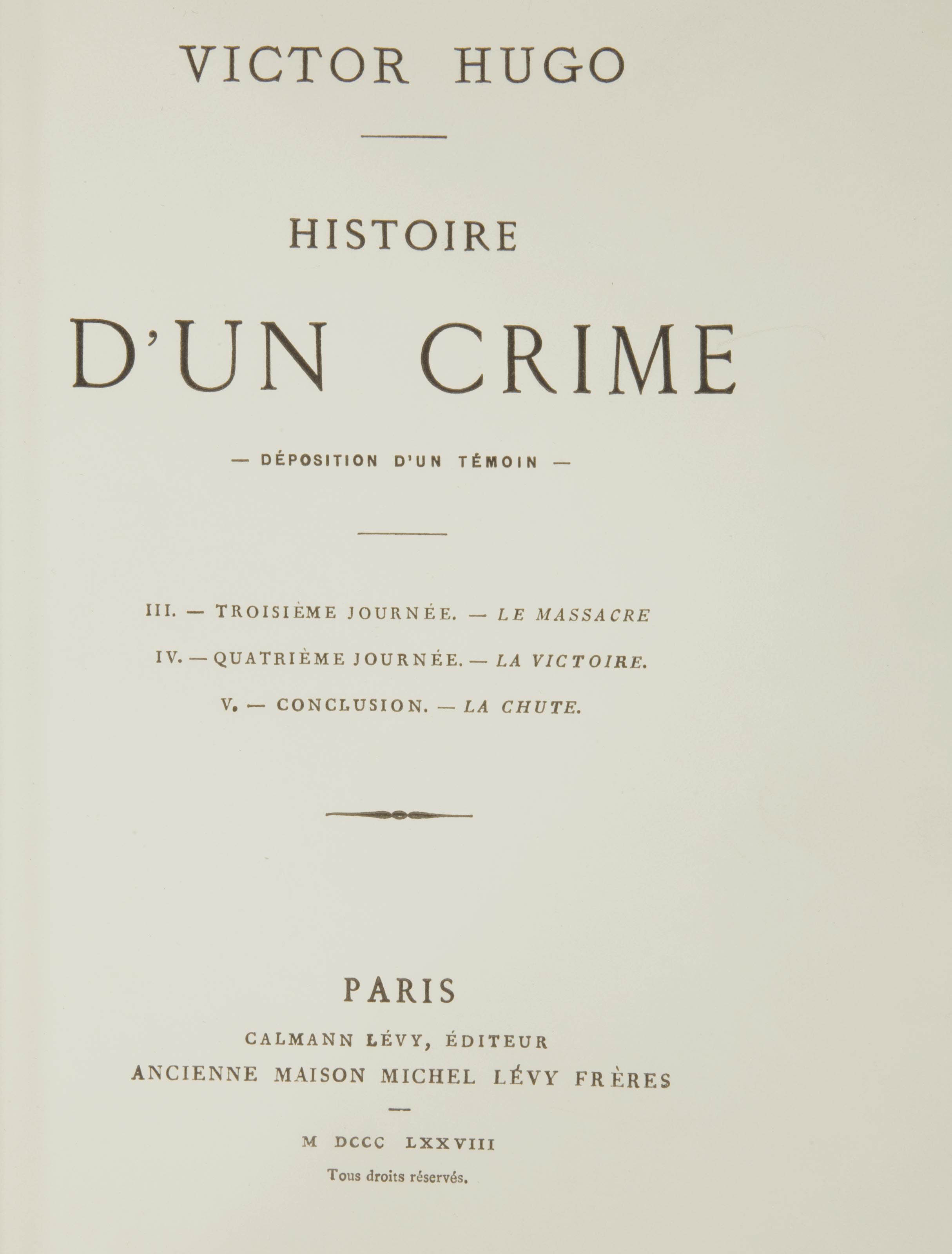 Histoire dun crime 1877 is an essay by victor hugo about napoleon iiis takeover of france. Le premier mérite de victor hugo cest davoir décelé la signification classe et lavènement du pouvoir personnel. Uncommonly good collectible and rare books from uncommonly good booksellers.