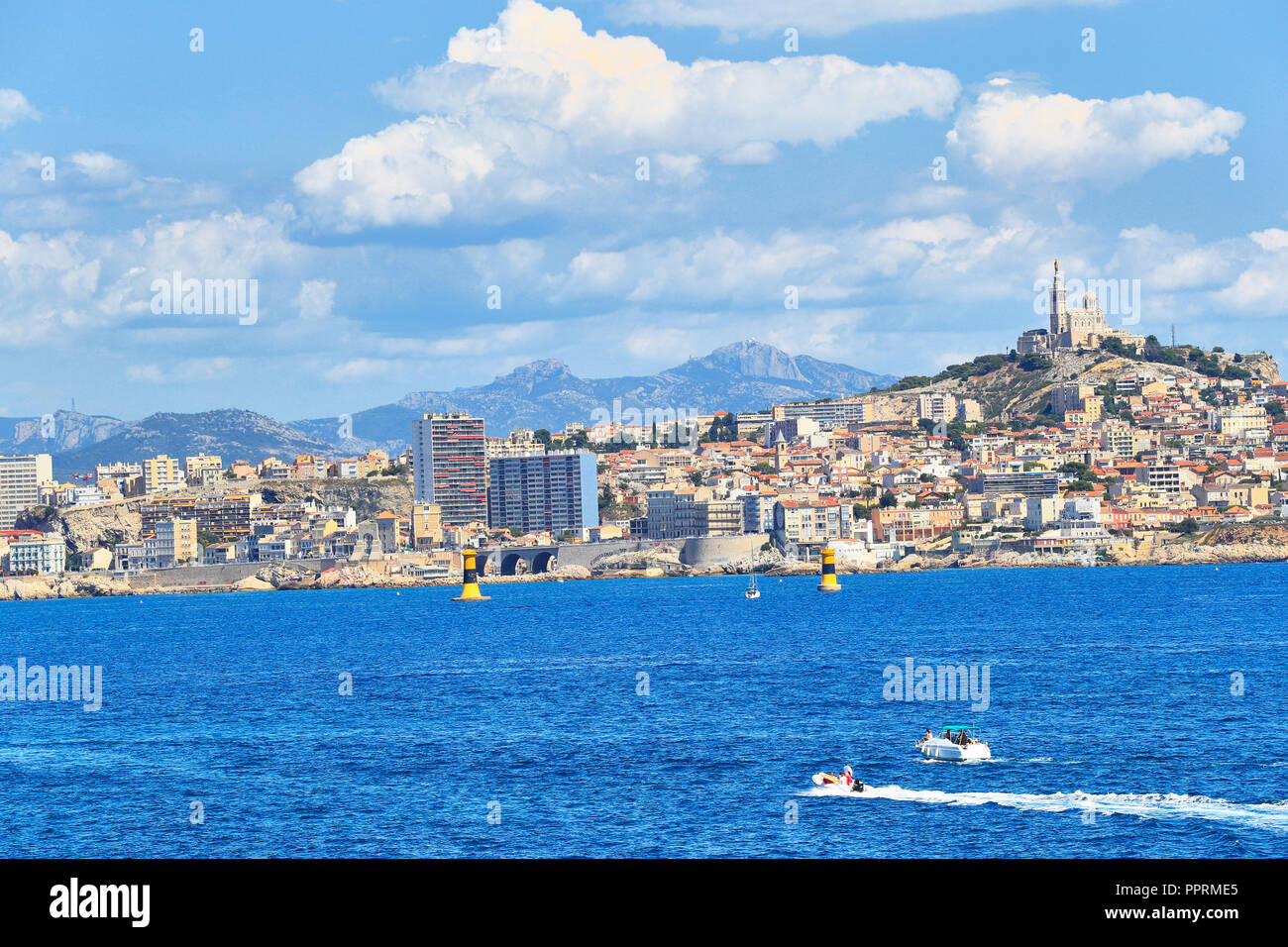 Vue Sur La Mer De La Ville De Marseille Et Léglise