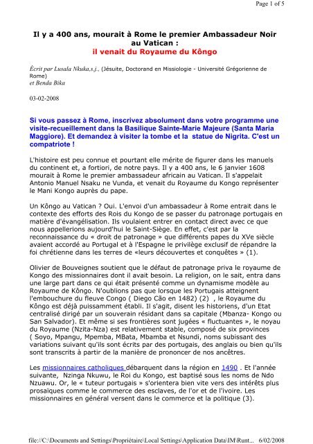 Il Y A 400 Ans Mourait à Rome Le Premier Ambassadeur Noir