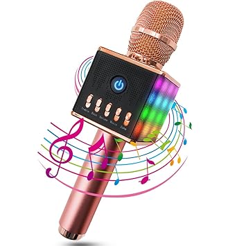 Eray Microphone Sans Fil Karaoké Portable Bluetooth 41 Led Lampe Coloré Dynamique 2 Haut Parleur Intégré Compatible Avec Appleandroid